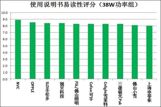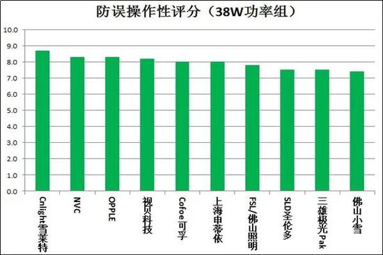 (38W功率组的10款样品综合评分结果)