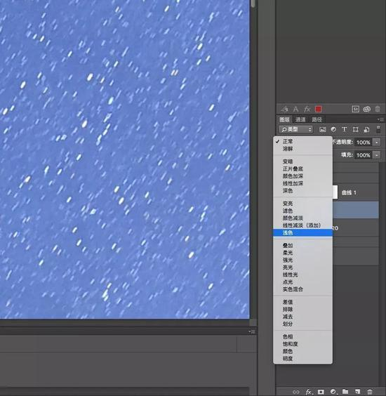 设置该流星图层为浅色叠加,使得流星部分与背景星空叠加在一起。
