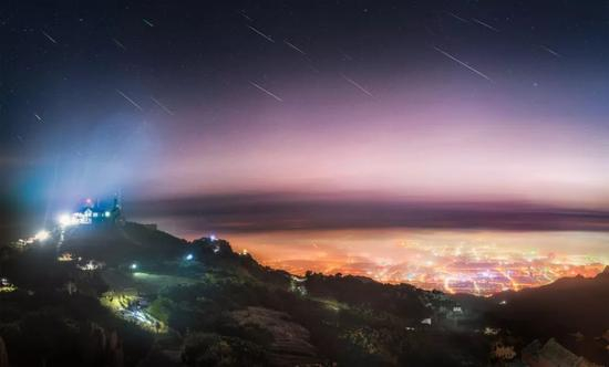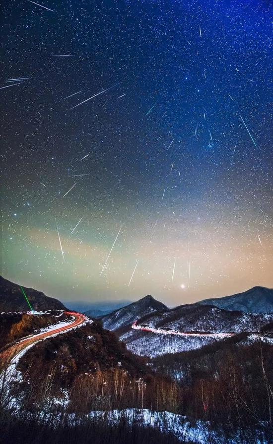 同时,还可以结合一些天文元素,如 15 年双子座流星雨拍摄的下图: