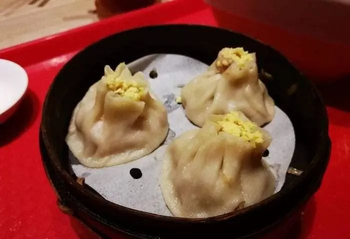 虽然它看起来是素馅,但又不完全素,其中加了猪肉。