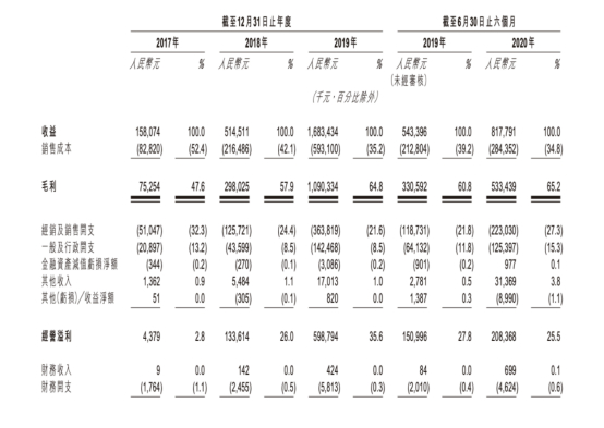All in 盲盒后的泡泡玛特毛利率逐步走高,2017年至2019年分别为47.6%、57.9%及64.8%,2020上半年高达65.2%。泡泡玛特自有IP的毛利率为71.1%,也就是说,售价59元的盲盒,成本仅17元。