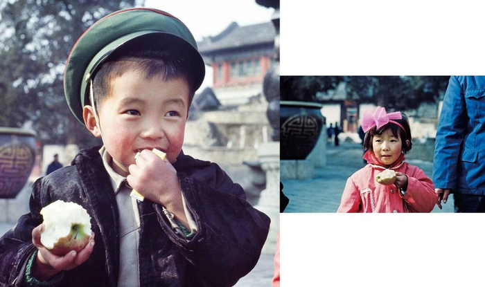 △ 北京颐和园,1980年,小男孩和小女孩在吃游船上的乘客送给他们的苹果