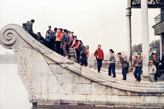 △北京颐和园,1980年,小学生们在石舫上玩得很开心。