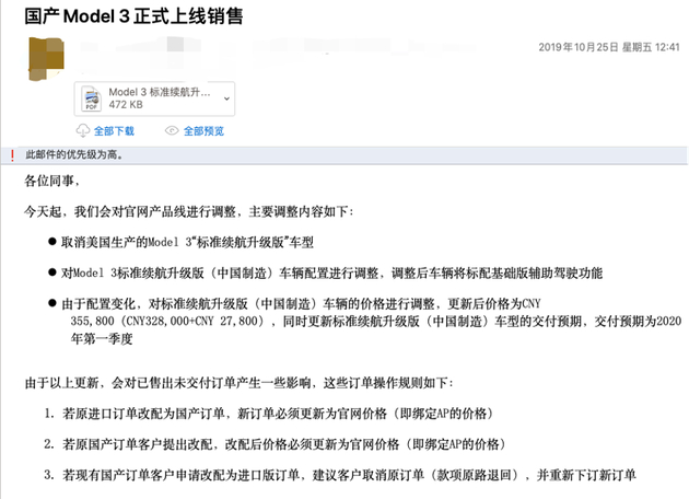 2、2020年4月10日,特斯拉突然在中国上架中国制造Model 3后驱长续航,舆论哗然。邮件内容显示,内部从4月3日开始就为该车上架做准备。