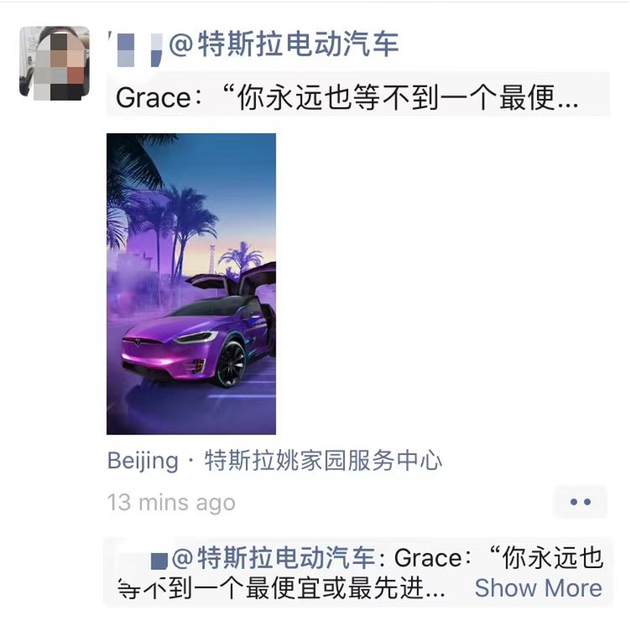 她这一表态,被许多特斯拉的销售疯狂转发到朋友圈,频率之高甚至导致微信自动折叠了这一段被复制粘贴发了无数次的话。