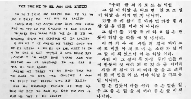 1945年,美军临时管制政府的学务部,规定小学和初中教科书不能使用汉字,政府文书也要用纯韩文书写。