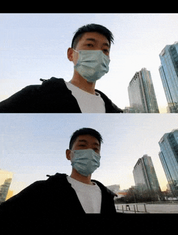 跑步状态 普通模式(上)与超广角模式(下)防抖效果