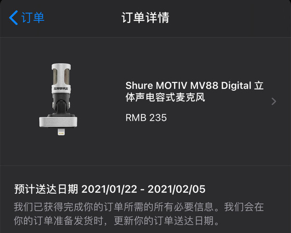 从这些网友反馈的信息中了解到,Apple Store中国官网应该是出现了Bug,不然平时售卖上千元的产品怎么会变成那么低的售价呢。例如,这款备受iPhone用户关注的Shure MOTIV MV88 Digital立体声电容式麦克风配件,平时售价是1288元,而官网出现Bug后的价格是235元,直接减少了上千元。