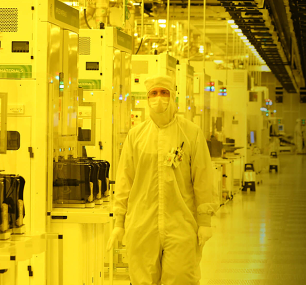 因为芯片非常微小,所有任何灰尘颗粒或头发丝都可能会破坏芯片的复杂电路。为了防止污染微电子产品,整个车间必须是无菌无尘的。大约六个足球场大小的区域,要比手术室还干净数千倍,并用昏暗的黄色灯光照明,以防止紫外线辐射破坏生产过程中使用的一些化学药品。实验室员工和工程技术人员穿着怪异的防护服,从头到脚包裹在白色安全服内,口罩和护目镜也戴得严严实实,然后才能开始工作。