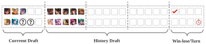 在选择英雄阶段,只能得到阵容信息,胜负信息是未知的。作者采用了胜率预测器来预测阵容的胜率并将其作为奖励函数。
