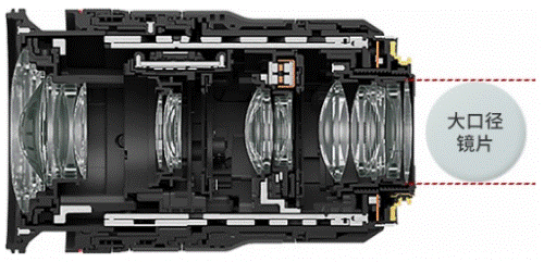 RF卡口继承了EF卡口相同的口径尺寸,而EF卡口一向就是以“大口径”而著称的。但由于不再需要反光板,所以法兰距由EF卡口的44mm缩短到了20mm,由于尾部镜片理论上可以伸进卡口内部,所以法兰距差几毫米其实并不会影响镜头设计,只影响转接其他卡口镜头的数量。基于RF卡口这一特性,佳能目前在高端镜头中普遍采用了短后对焦距离+尾部大口径镜片设计。