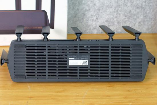 在日常使用中,路由器的散热也是非常重要的。小米路由器AX6000底部均为镂空设计,并且通过四角的脚垫将底部抬离桌面,保证路由器内部的热量能够更快的散发出去。不仅如此,在主板元件上,也覆盖了大面积的金属材料散热片与高导热率导热胶,提升机器内部的散热效率。