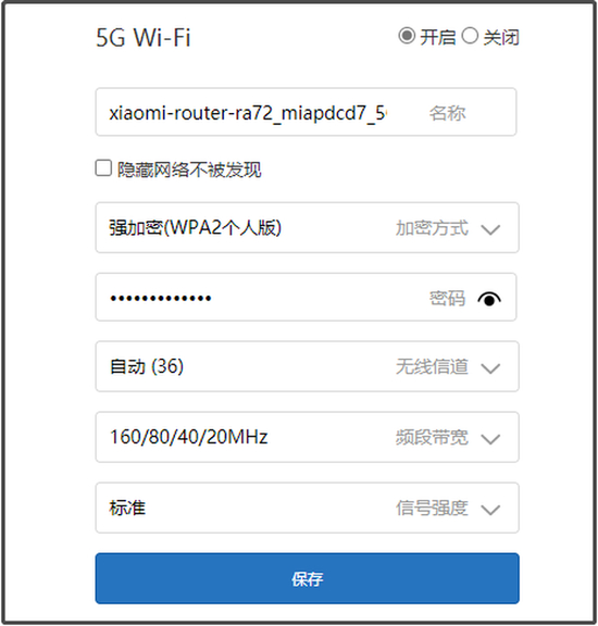 通过设置,小米路由器AX6000在5G频段下能够实现160MHz的频段带宽。