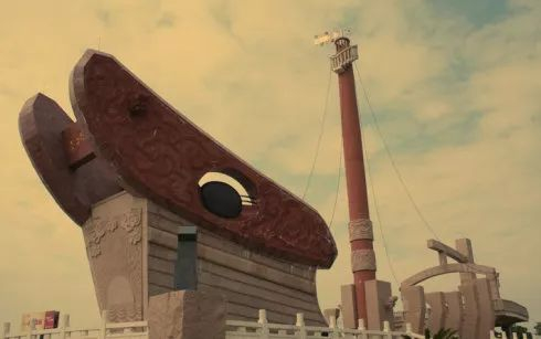 潮州红头船雕塑。“红头船”是潮汕地区华侨华人远渡重洋拓殖海外的远洋商船,因船头油刷朱红色而得名。