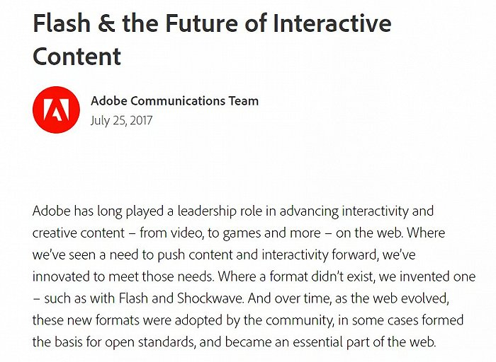 3年前Adobe宣布将放弃Flash,并在几年间逐渐让Flash退出市场。12月9日Adobe宣布,为Flash Player带来最后一次常规更新,到12月月底,Flash将不再支持,同时在2021年1月12日之后,Adobe自己将阻止Flash内容在Flash Player中运行,到时候任何人都将无法使用Flash。20余年的时间过去,Flash时代彻底落幕,它迎来了各种意义上的寿终正寝。