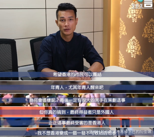 他痛呼一些年轻人再不清醒过来,最终受益人只有外国人,受苦的却是香港人。“希望香港的市民们可以团结起来,真真正正为香港的未来着想。”