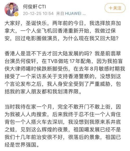 近日,何俊轩发了一段视频重提此事,阐述了从因撑警被起底,到选择来内地发展的心路历程。