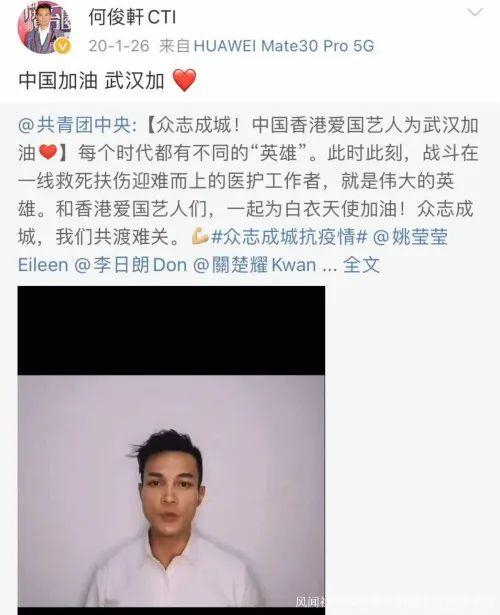 2020年初,作为香港爱国艺人代表,他为全国抗疫加油鼓劲。