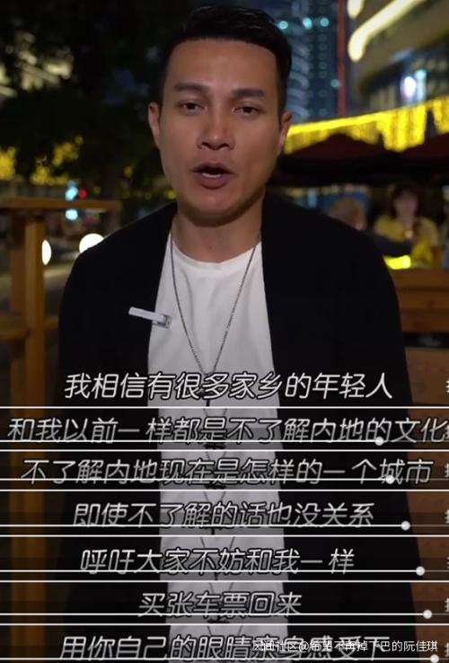 如今除了一些演艺活动,他还是名旅游美食视频博主,游历祖国大好山河,介绍内地吃喝玩乐的好去处,接下来还要探访在内地生活工作的香港人,希望借此也能呼吁一些香港年轻人放下偏见。
