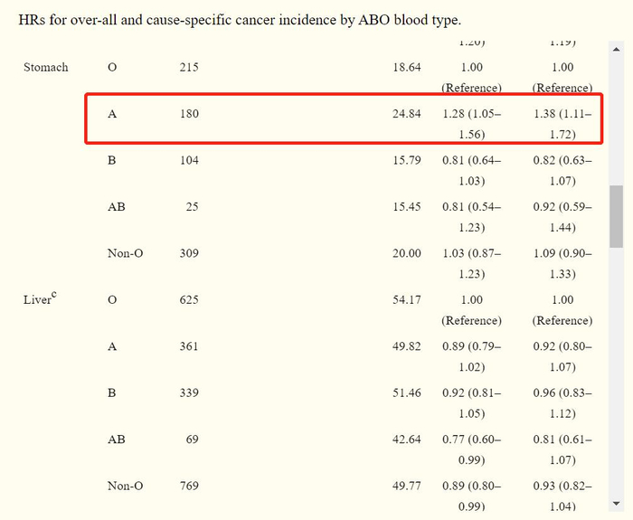 来自《美国流行病学杂志》研究结论也提示我们,如果血型是AB型,患的胃癌风险大约比B或O型血高26%,如果是A型,则风险高20%。