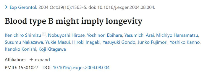 说了这么多,其实我们都知道,影响疾病的因素往往有多种,血型只是其中一种,且不同研究可能也存在矛盾之处。最终可能都要回归到一个硬性指标——寿命。从逻辑上讲,上述研究已扩展到关于ABO血型与寿命的潜在关联,但在二十世纪中期,就有研究开始试图解释不同血型个体之间的寿命差异了。那么不同血型的人真的会寿命不同吗?哪种血型的人寿命更长?