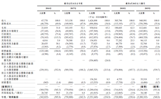 但作为AI独角兽,旷视科技同样无法回避亏损问题。此前提交港交所的招股书显示,旷视科技2016年、2017年、2018年和2019年上半年的营业收入分别为人民币6780万元、3.13亿元、14.27亿元和9.49亿元,对应的亏损分别为人民币3.43亿元、7.58亿元、33.52亿元以及惊人的52亿元。