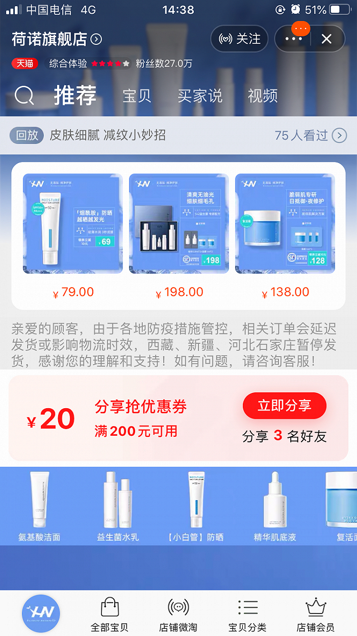 据了解启迪禾美旗下品牌不仅在线上布局京东、天猫等电商平台,也在线下开设高端实体店,并与高端医美机构、皮肤管理机构合作。