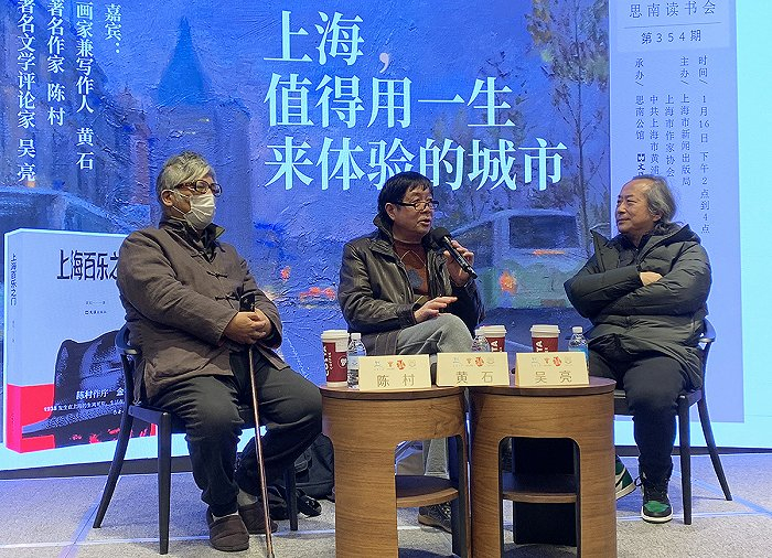 活动现场,(由左到右)陈村、黄石、吴亮。