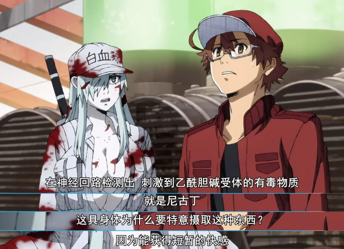 动画第一集就提到了,身体主人戒烟十年后,重新吸烟导致的一系列连锁反应:红细胞发生一氧化碳中毒纷纷死亡。
