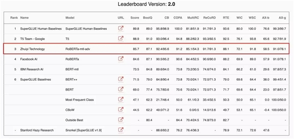 SuperGLUE(Super General Language Understanding Evaluation)是当下NLP领域难度最大,权威性最高,含金量最足的测评标准之一,由纽约大学、华盛顿大学以及谷歌旗下的DeepMind联合Facebook作为主要发起人推出,最大程度涵盖了现实生活中可能遇到的不同类型的NLP任务,旨在更真实地反映当前最前沿的NLP技术可以达到的认知智能水平。追一科技在为企业提供智能交互服务的过程中,技术和应用互相驱动,将实际商业化应用中总结出的多任务学习、对抗训练、知识蒸馏等技术手段和经验融入到参赛模型中,并在2020年在国际NLP权威榜单SuperGLUE上超越Facebook,排名第二,工业模型第一。