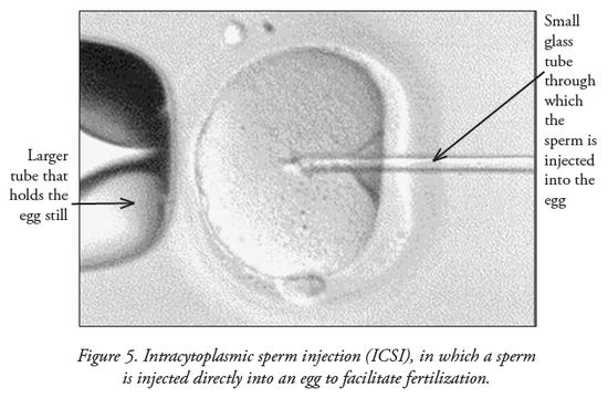 前文提到的胞浆内精子注射(ICSI)也存在一定的隐患。它对卵子存在一定的损伤,而且这个技术绕过了受精卵自然结合中的筛选过程。本身使用ICSI就是因为男性的精子有异常,比如活动性不够高,或者形态不健康,这会增加后代染色体异常的风险。ICSI技术出现时间比较晚,目前还没法从真实数据中了解这个担忧是不是多余。
