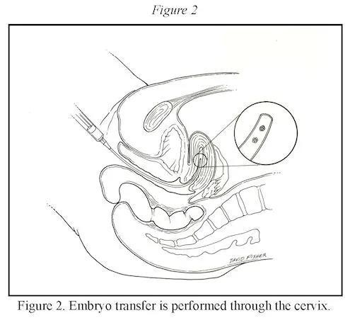 胚胎会被吸入转移导管,导管通过阴道窥镜送入子宫颈,将胚胎放进子宫腔中。为了保证成功率,这一步可能会同时放进多个胚胎(昨天看了一个代孕女孩在不知情的情况下怀了四胞胎的新闻)。没有用完的胚胎可以冻存起来。