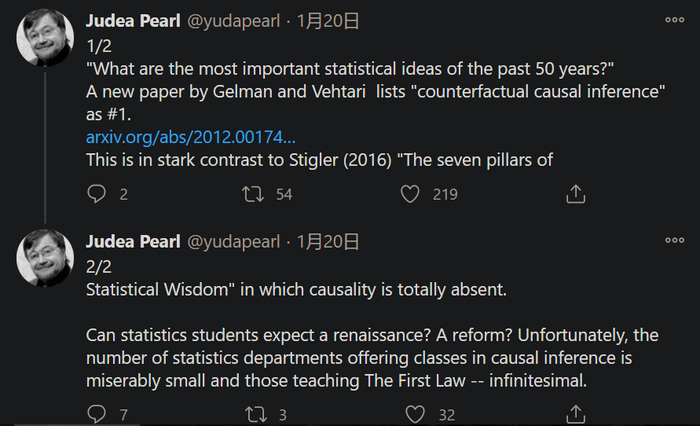 这篇论文在社区引起了热议,图灵奖得主、贝叶斯网络之父 Judea Pearl 等学者纷纷转推并发表自己的观点。他表示:「这篇论文将因果推理列入了统计学思想之一,与芝加哥大学统计系教授 Stephen Stigler 所著《统计学七支柱》中的观点截然不同。」