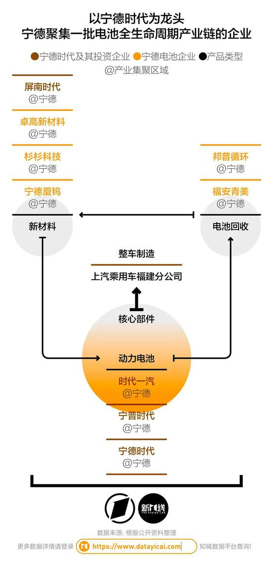 它也带动了宁德市的产业布局。这座城市希望借由龙头企业的能力,成为全球最大的锂电新能源电池生产基地,因此在全市7个县市区主动引进和培育相关,形成了覆盖上游新材料领域、中游电池制造和下游电池回收的全产业链模式。