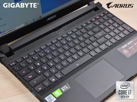 键盘上方便是我认为技嘉AORUS这代产品最为出彩的地方,也是着重体现出跑车竞技感及速度感的地方。