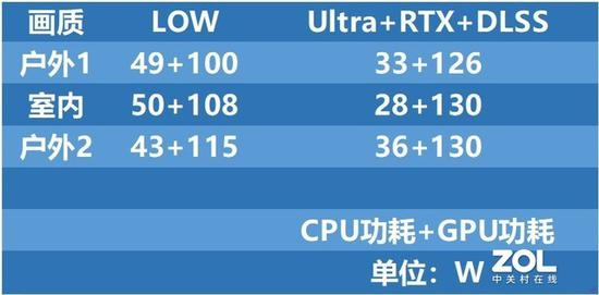 通过测试我们可以看到,CPU+GPU的功耗大致在160W左右,(CPU与GPU的TDP分别为45W与115W)游戏画质的提升对显卡的要求肯定更高,在更高的画质下,Dynamic Boost 2.0将功耗更多的分配给了显卡,这样做的好处并不是说使得帧数提高多少,而是使得游戏帧数更加平稳,减小波动,减少大幅度掉帧的情况,让玩家们获得更稳定的游戏体验。