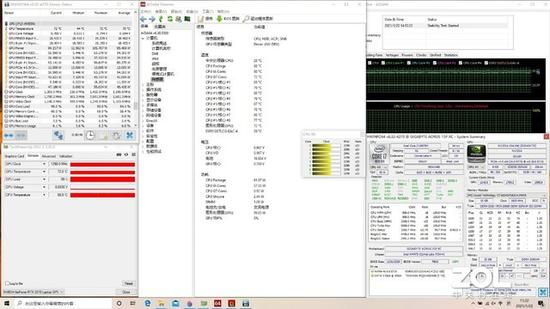 最后是双烤测试,AIDA 64 Stress FPU+FurMark 1920*1080P 8X MSAA,30分钟后,CPU功耗62W,温度88度,全核心频率3.3GHz;GPU功耗100W,温度72度,核心频率1290MHz。