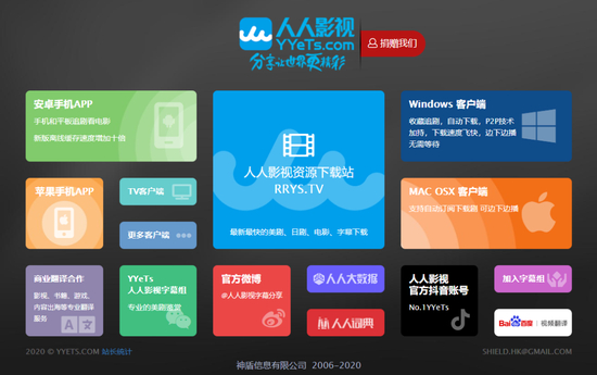 目前,在网页搜索“人人影视”,其页面还可以显示,但里面的下载链接已经无法打开。