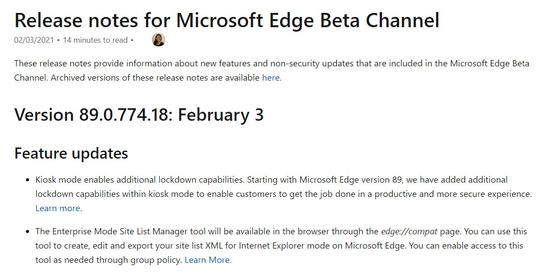 信息亭模式添加了新的锁定功能,并增加了一个新的企业模式站点列表管理器工具,用户可以在地址栏输入 edge:// compat 上将其启用。另外,用户可以使用 IE 模式创建,编辑和导出站点列表。