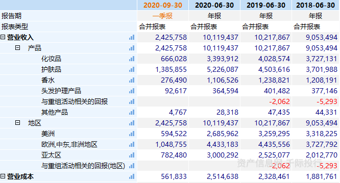 表雅诗兰黛(ESTEE LAUDER)[EL.N]收入分解