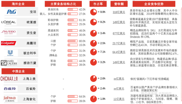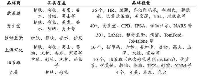 图外资化妆品集团经验:覆盖品类较广,品牌数较多