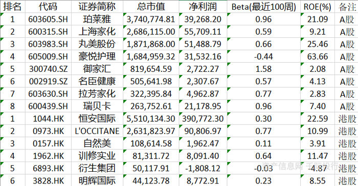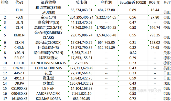 ▷ 雅诗兰黛 (ESTEE LAUDER)[EL.N]:雅诗兰黛公司是一家生产和销售品牌护肤品、化妆品、香水和护发产品的公司。旗下品牌包括雅诗兰黛、Aramis、倩碧、悦木之源、魅可、芭比波朗、海蓝之谜和Aveda,公司产品远销多个国家和地区。