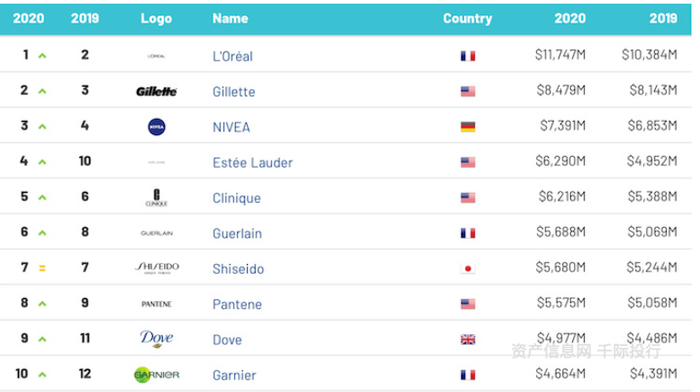 图 2019 全球最有价值的 50美妆个护品牌排行