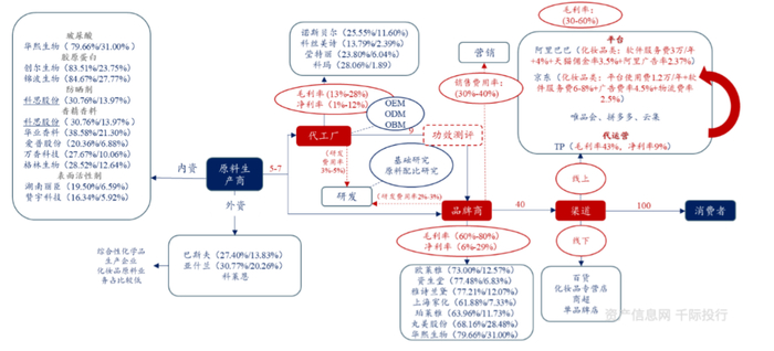 美妆个护相关产品的生产可分为自产、代工两种模式。由于生产环节需要较高的固定资产投资,具有显著的规模效应,通常仅有大型化妆品集团会自建生产基地,用于生产旗下的高端化妆品,小品牌与大众品类通常采用代工模式。