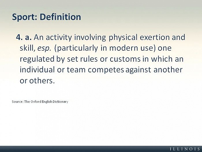 韦氏词典(Merriam-Webster)的释义是最简化的,只是说「体育是消遣的一种来源,是一种娱乐。」
