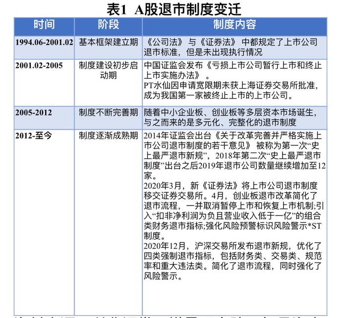 1、中国资本市场退市制度演变历史