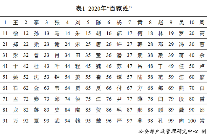 2月8日,公安部发布《二〇二〇年全国姓名报告》。