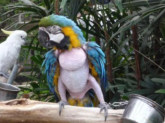 不知道大家有没有听说过鹦鹉会拔自己的毛,甚至把自己拔成光秃秃的样子。当鹦鹉被冷落或者被暴力对待时,也会让它们精神紧张,甚至患上抑郁症,通过拔自己的羽毛来缓解压力。