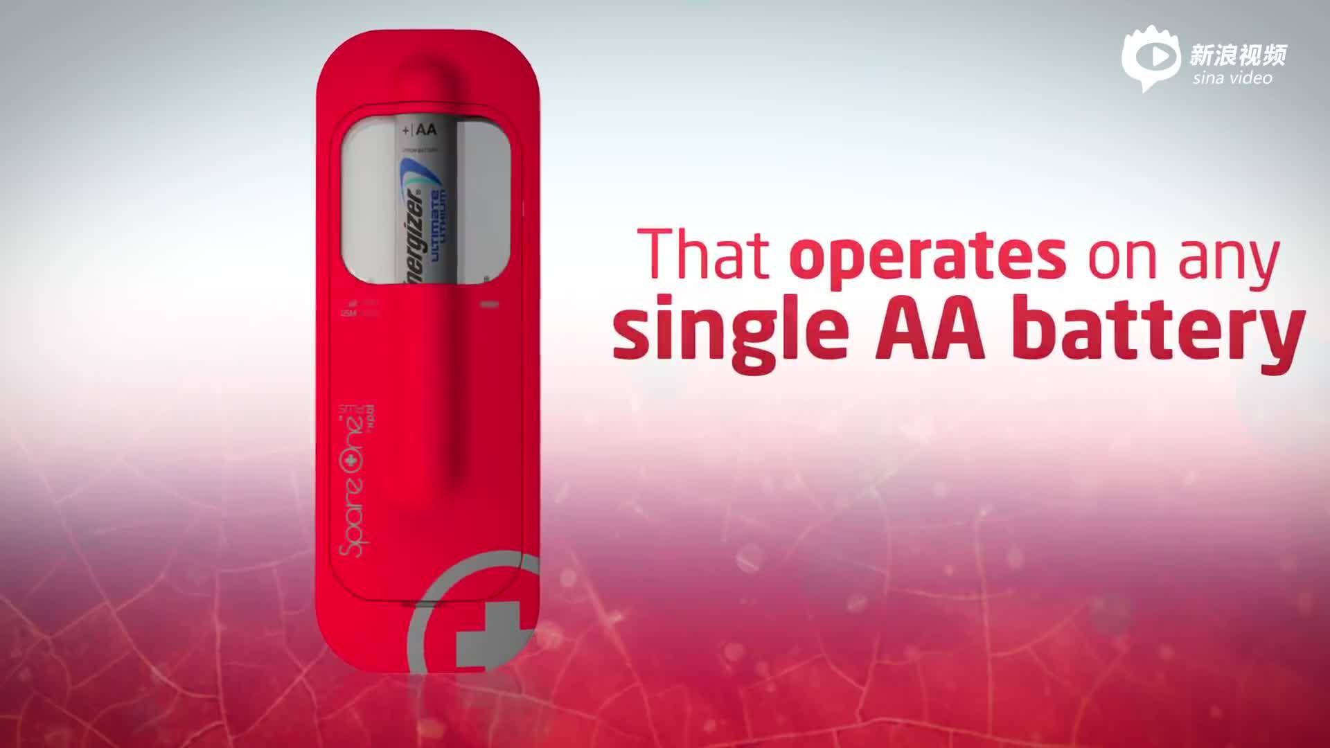 这个红白相间的产品叫SpareOne Plus,是劲量(Energizer)电池的一个合作产品。正如你所看到的那样,它是用一颗5号电池供电的,但SpareOne只是作为备用电话的存在,最初是为急救人员设计的,仅在紧急情况下使用。