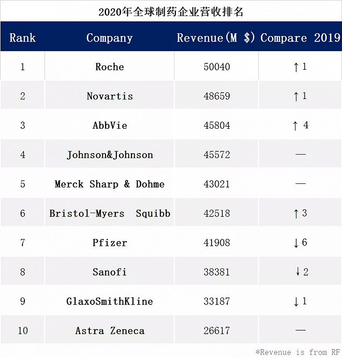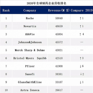 原标题:2020全球顶级药企TOP 10最新出炉,排名大洗牌